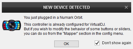 A Pro Infinity, a PLUS or a Pro Subscription License is required to use the Numark Orbit. Without any of the above Licenses, the controller will operate for 10 minutes each time you restart VirtualDJ.