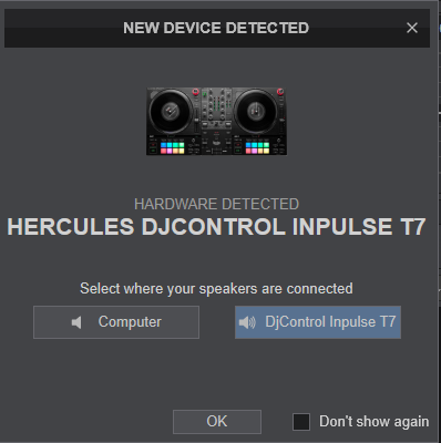 Click on the DJControl Inpulse T7 button to allow VirtualDJ to auto-create the pre-defined audio configuration.