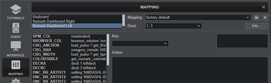 The unit should be visible in the MAPPINGS tab of VirtualDJ Settings as 2 devices (Left and Right Dashboard) and the “factory default” available/selected from the Mappings drop-down list for both of them.