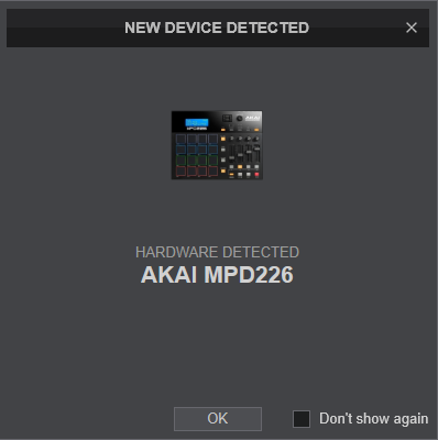 No driver software is required for the AKAI MPD226 to be installed. The device is a USB class compliant and your Operating System will auto-install the necessary driver when connected with a USB cable. The unit offers external powering as well, but is not required for the unit to operate (USB bus powered)