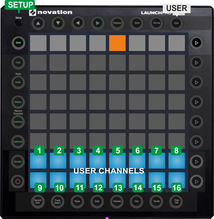 - The User (Midi Channel) mode selection is memorized, so if the User 2 mode is selected, then use one of the NOTE or DEVICE buttons at the top to go to a different mode and then back to USER, the previously selected User mode will be offered.