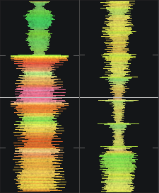 - SCRATCH WAVEFORMS (Essentials & Pro Layouts). Displayed in the Scratch Mixer and run vertically. Their main purpose is to pinpoint areas of the track that will be scratched to improve accuracy. The Scratch Waveforms can be zoomed in and out by using a wheel mouse, and just like the Deck Waveforms the color can be changed to 5 separate options in Settings Options under coloredWaveforms.