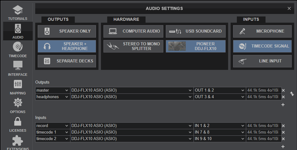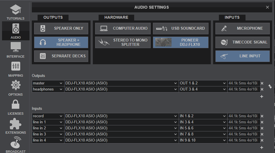- Open VirtualDJ Settings ->AUDIO tab and press the LINE INPUT button from the INPUT tab
