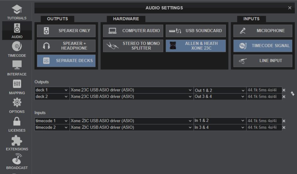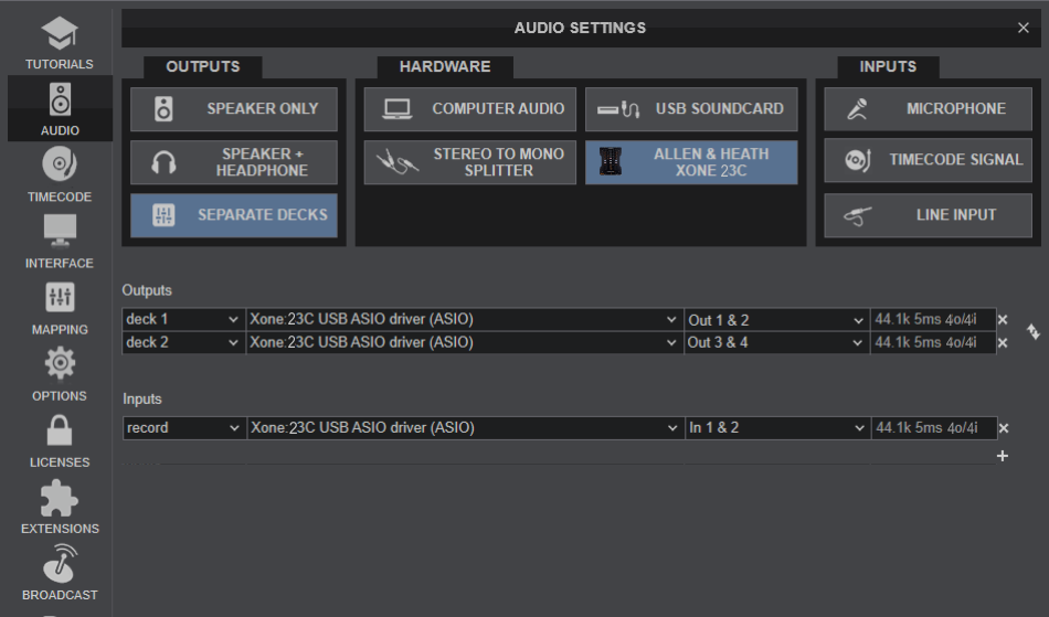 - The mixer soundcard routing will need to be internally reconfigured. Please consult the A&H Xone:23C Guide (page 19) for further details. https://www.allen-heath.com/ahproducts/xone-23c/
