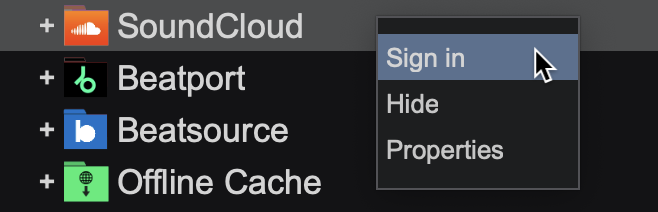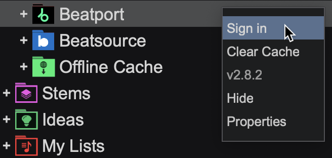 You can now use the root Beatport folder to search their catalog directly from the VirtualDJ search bar. Expanding the Beatport folder using the button will also display your Offline Library and any playlists that you have created in the service.