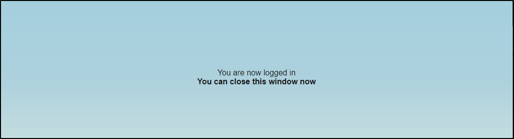 Once completed, a confirmation window will appear advising that you can close the window as you are successfully logged in.