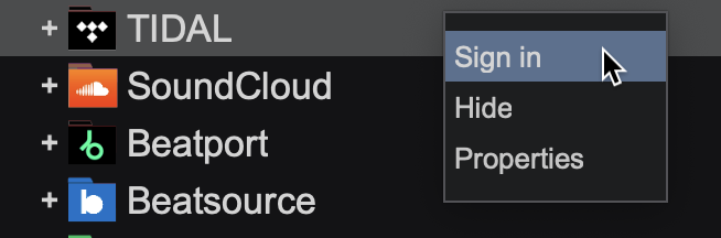 You can now use the root Tidal folder to search their catalog directly from the VirtualDJ search bar. Expanding the Tidal folder using the button will also display any playlists that you have created or subscribed to in the service as well as liked artists, songs and playlists.