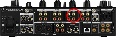 - Connect the "Audio Out" terminals on the rear of each CDJ with a "Line" input on the back of your mixer by using a pair of standard RCA cables.