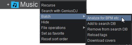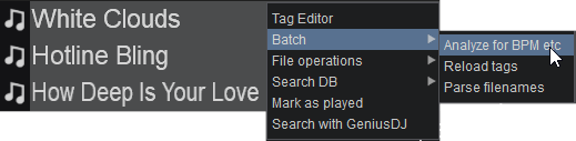 Multiple files can be selected (using mouse click +SHIFT or CTRL), and Batch Analyze for BPM etc option from the same right-click menu.