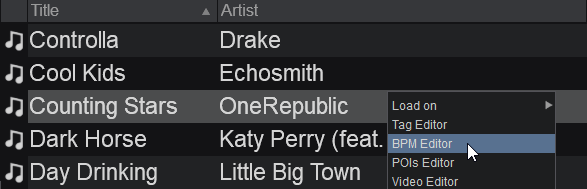 1. From the File list, right-click on the file to be edited and select BPM Editor from the option menu that appears.
