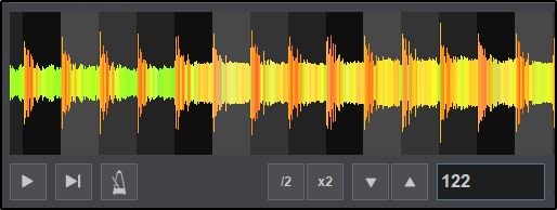 3. WAVEFORM. Provides a visual display of the audio information. It displays the beatgrid using the grayscaled background and can be zoomed in to make precise BPM adjustments with a wheel mouse.