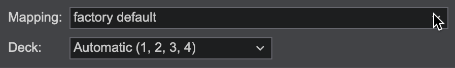 - MAPPING LIST - Each connected device offers Factory default mapping and Ignore in the Mapping Dropdown. Set a device to Ignore in order to use it with a different application while running VirtualDJ at the same time. If a Custom Mapping is available, it can also be selected.