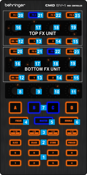 Both Top and Bottom FX Units offer exactly the same functionality, providing the ability to select which FX Slot each unit will control