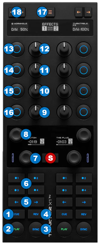 - FX BEATS: Use these buttons to adjust the length of the effects in beats (for beat-aware effects)