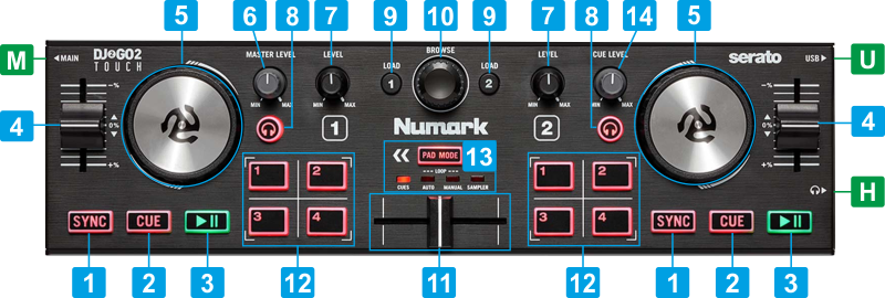 Cycles through the Pad modes (Hotcues, Auto Loops, Manual Loop and Sampler). See Pads