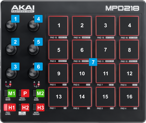 In Pads mode : Trigger the Pads of the selected Pads page. Pads 1 to 8 trigger the Pads for Left Deck. Pads 9 to 16 trigger the Pads for Right Deck. See Pads in VirtualDJ Manual for further details