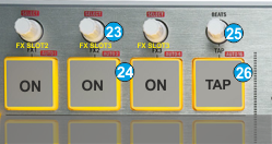 FX1 ON: Press this button to trigger the selected Effect on FX Slot 1.
