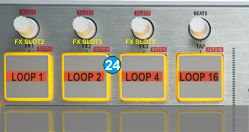 The upper 4 PADs (24) of the Mixtrack II offer multi-slot Effect controls and Quick Loops if SHIFT button is pressed.