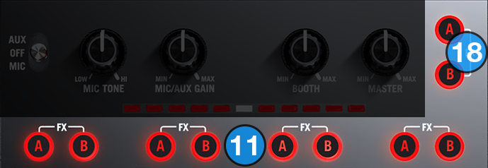 - MASTER FX A/B: Use these buttons switch each effect unit to Master FX mode