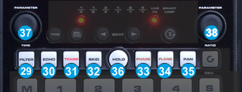 - TRANS. Press this button to enable/disable the Beat Grid effect on this deck