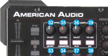 - FX PARAMETER. Hold down this button to offer secondary function to the FX CONTROL (35) knob. Hold SHIFT down and then press this button to reset the applied Low-High Pass Filter (off/middle software position)