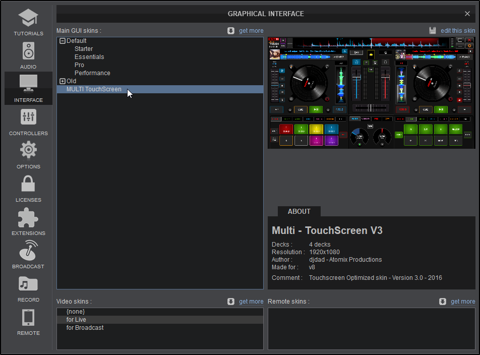 - Once installed you can now use the new extension by going to that section of the software. In the example a skin was installed so you would go to the Interface Tab to select the new skin.