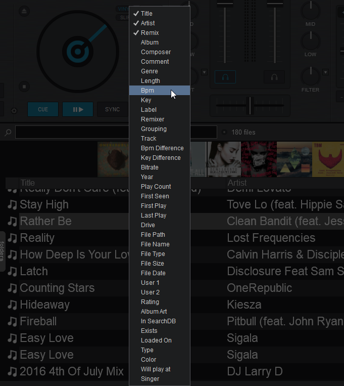 The File List offers all the Audio, Video, Karaoke tracks and VirtualDJ Samples of the selected folder and information depending on the visible Fields. Drag and drop a file from this list to any of the VirtualDJ decks to play the file.