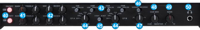 NORMAL-REVERSE. Switch to REVERSE position if you wish the crossfader to operate in reverse mode (Hamster)
