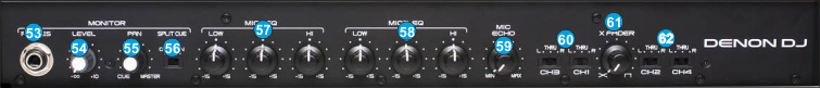 - PHONES SOCKET. Connect your 1/4" headphones to this output for cueing and mix monitoring.