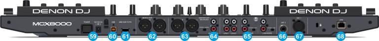 - POWER: Use the included AC/DC power suplier to connect MCX8000 to a power outlet. While the power is switched off, plug the cable into unit first, and then plug the cable into a power outlet. Use the Power Switch to turn the unit on and off. Turn on unit after all input devices have been connected and before you turn on amplifiers. Turn off amplifiers before you turn off unit