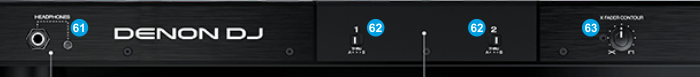 Denon DJ Prime 2 - Front panel - HEADPHONES SOCKET. Connect your 1/4" or 1/8" headphones to this output for cueing and mix monitoring.