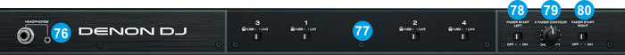 Denon DJ Prime 4 - Front panel - HEADPHONES SOCKET. Connect your 1/4" or 1/8" headphones to this output for cueing and mix monitoring.