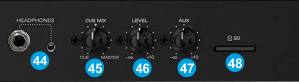 - AUX LEVEL. Adjusts the output volume of the AUX input (connection at the rear panel).