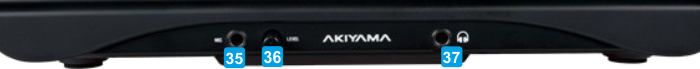 35 MIC INPUTConnect a Microphone via the 1/4" socket36 MIC LEVELAdjust the Level of the Microphone Input37 HEADPHONESConnect your Headphones to either the 1/4" socket. The Level of the Headphones Channel is controlled by the knob at the top panel