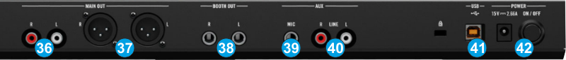 This input is also part of the USB Audio Interface and supports Microphone Input to a VirtualDJ Deck. See Advanced Setup. - USB. This USB connection sends and receives audio and control information from a connected computer.