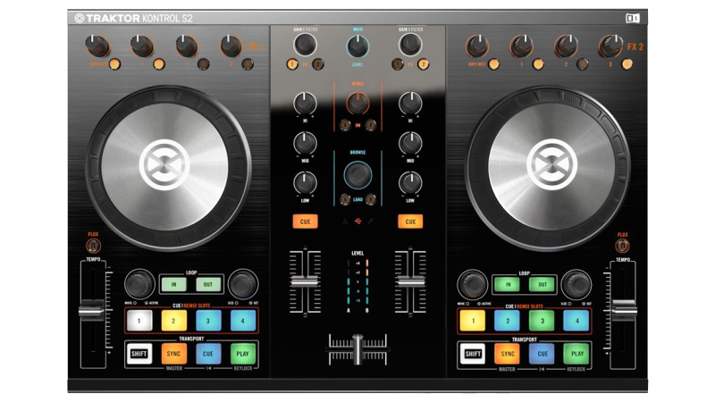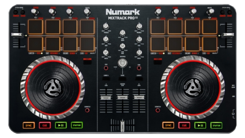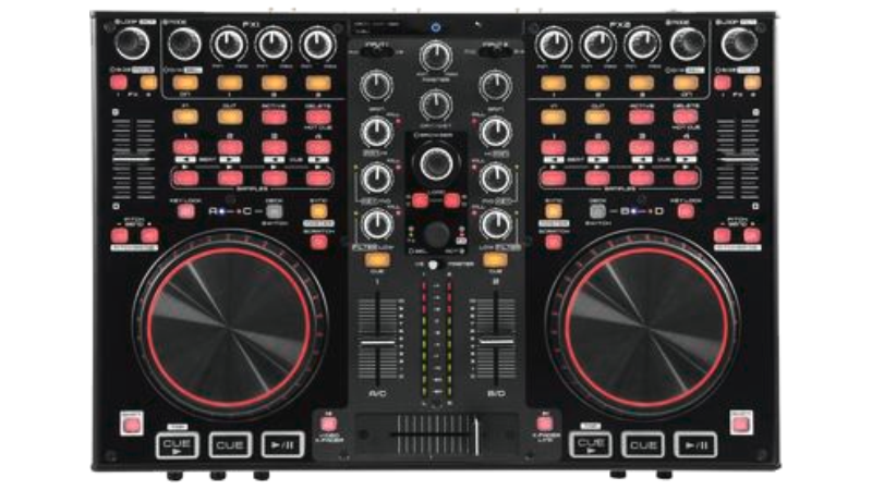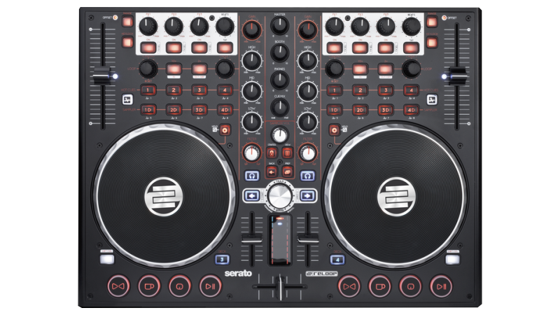 A complete 4 deck controller with built in sound card. Plug in microphones, headphones or even timecode into the vast number of inputs and outputs.