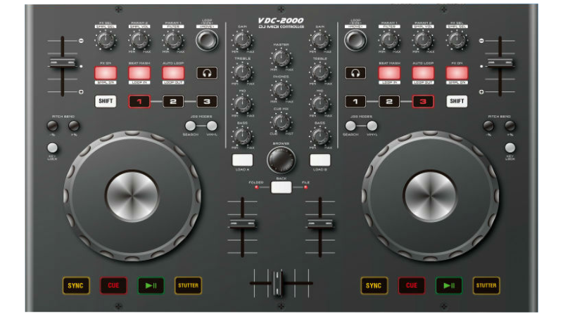 Affordable professional controller packaged with Virtual DJ LE. Suited for both the Bedroom DJ as well as those wanting to move onto a more professional setup. Manages to keep functionality but maintain an uncluttered and ergonomic layout.