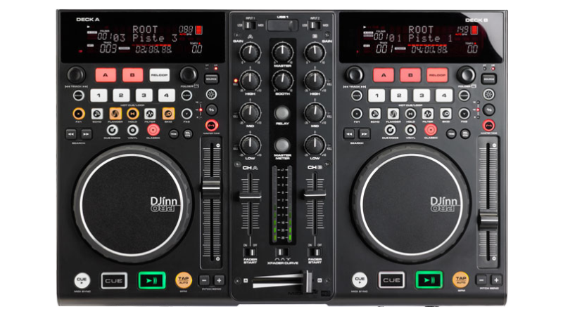 No need for any computer as long as you have your music with you: hard disks, USB keys, turntables and CD players. It can also be used as a MIDI controller compatible with most DJ softwares and is supplied with the famous Virtual DJ LE. Insert any analog source in your mix, thanks to the Line and microphone inputs.