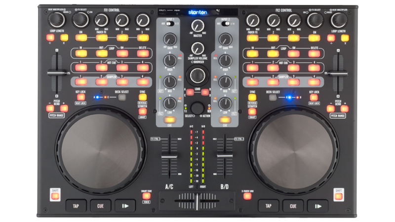 A complete 4 deck controller with built in sound card. Plug in microphones, headphones or even timecode into the vast number of inputs and outputs.