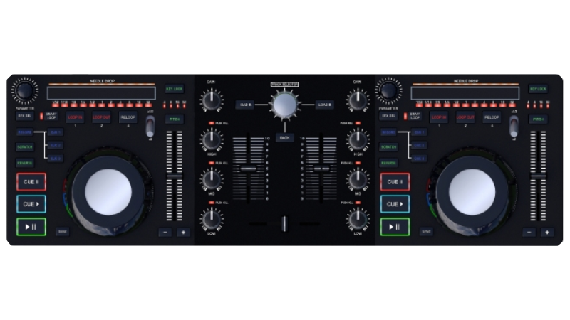 A compact DJ controller with dual deck controls and a 2 channel mixer. Perfect for a back-up or something to quickly throw into a back pack.