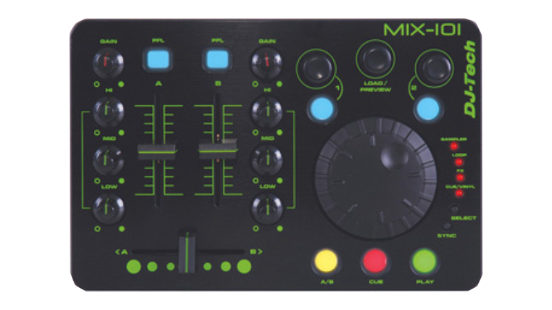 The MIX-101 seeks to integrate mixer and transport controls directly into one device. Divided into two channels, the MIX-101 contains a jog wheel, navigation encoders, and buttons that can be assigned for cue points, loops, or samples. With a compact form factor and full customization options, the MIX-101 is the perfect solution not only for digital DJs, but also producers who are looking for additional control in their studio environment.