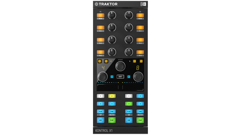 Whether DJing all-digital or with timecode control, the mighty TRAKTOR KONTROL X1 gives you total control of decks and effects with a unique combination of power and portability. Browse tracks, nudge, seek, or control loops and effects with focused precision. Without ever reaching for the laptop.