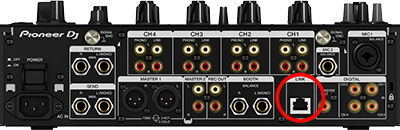 - Connect the "LINK" port on the back of the DJM on the same network switch.