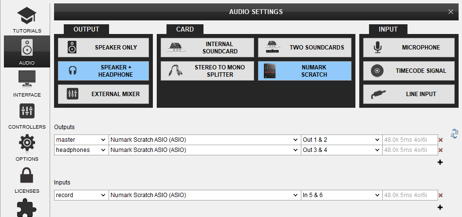 The Numark Scratch has a dedicated USB Input (channels 5,6) to record your Main Mix (default setting) and the Microphone. VirtualDJ has pre-configured this input for recording, thus no special setting is required in order to record your mix (including analogue sources and Microphone).