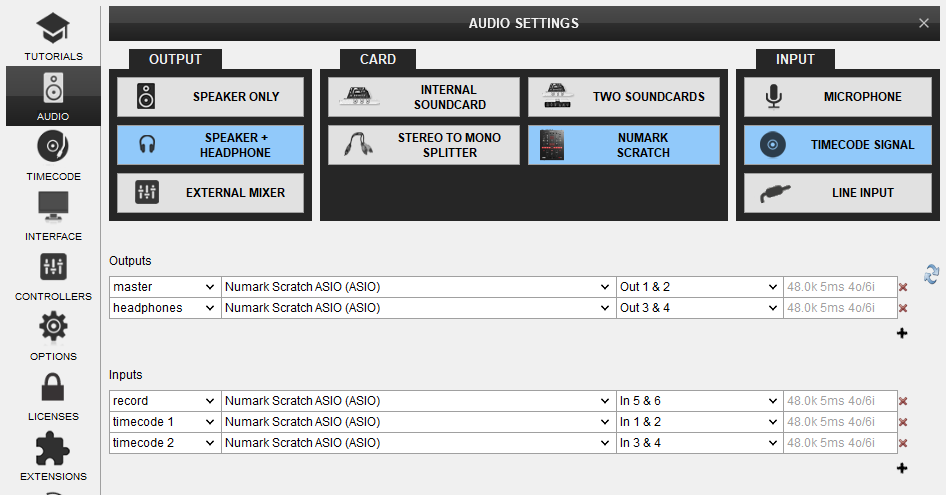 Open the AUDIO tab of VirtualDJ Settings and click on the TIMECODE button for VirtualDJ to auto-create 2 Timecode Inputs.