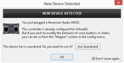 A Pro Infinity a PLUS Controller, a Subscriber License or a LE keycode is required to use the American Audio VMS5. Without any of the above Licenses, the controller will operate for 10 minutes each time you restart VirtualDJ.