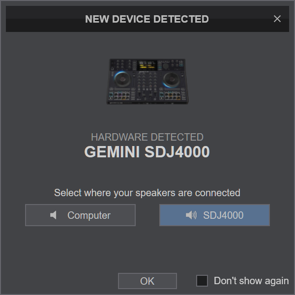 Click on the "SDJ4000" button for VirtualDJ to apply the predefined audio setup with the built-in sound card of the Gemini SDJ-4000. You can still change that from Settings->AUDIO tab.