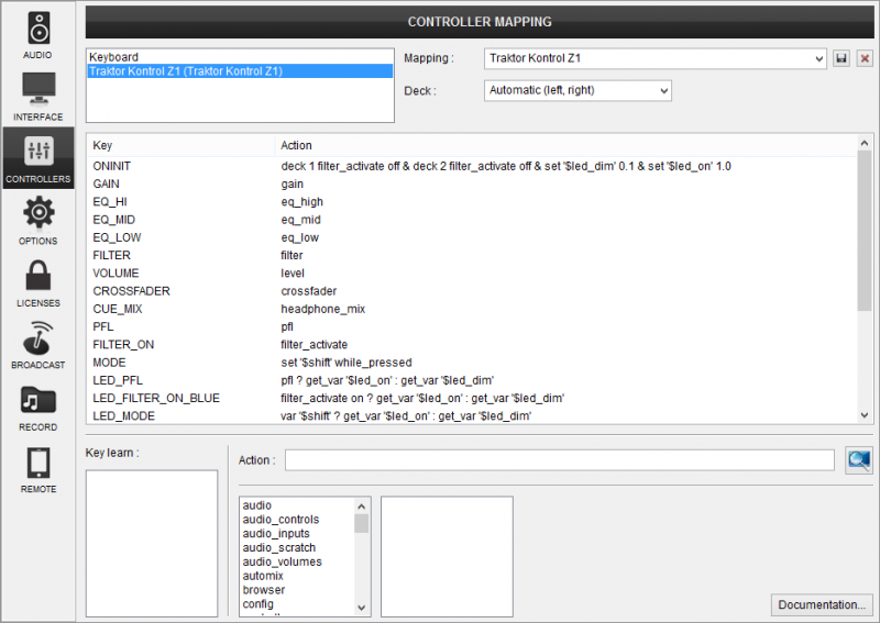 The unit should be visible in the CONTROLLERS tab of Config and the “factory default” available/selected from the Mappings drop-down list. The factory default Mapping offers the functions described in this Manual, however those can be adjusted to your needs via VDJ Script actions.