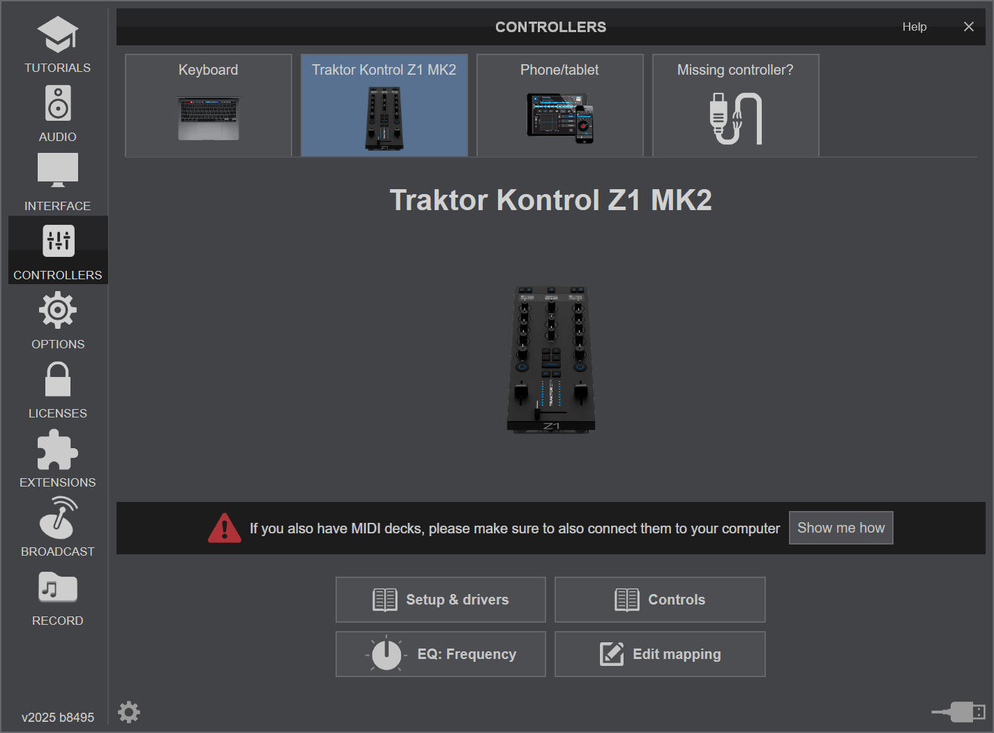 Click on the "Kontrol Z1 MK2" button in order VirtualDJ to apply the pre-defined audio configuration for your device.