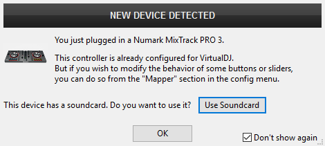 Click on the "Use Soundcard" button in order VirtualDJ to apply the pre-defined audio configuration (speakers need to be connected to the rear side of the unit in this case).